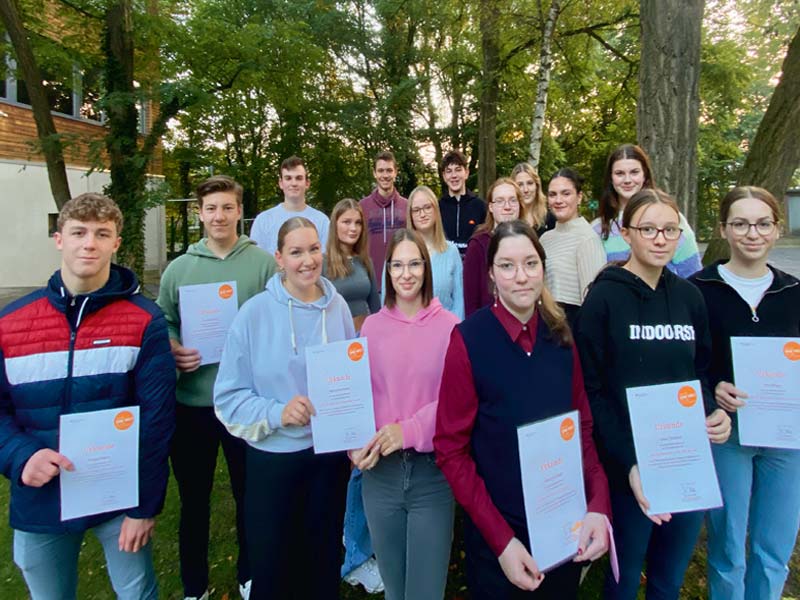 Zusammen mit seinen Schülerinnen und Schülern freut sich die betreuende Lehrkraft Sven Kromminga über das Preisgeld von 2000 Euro.