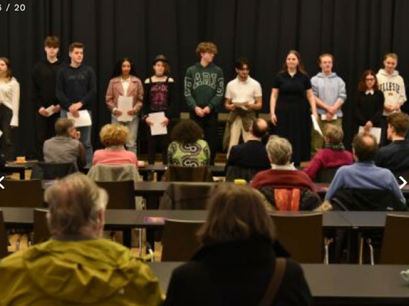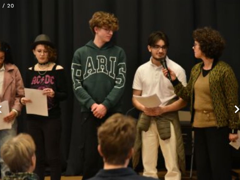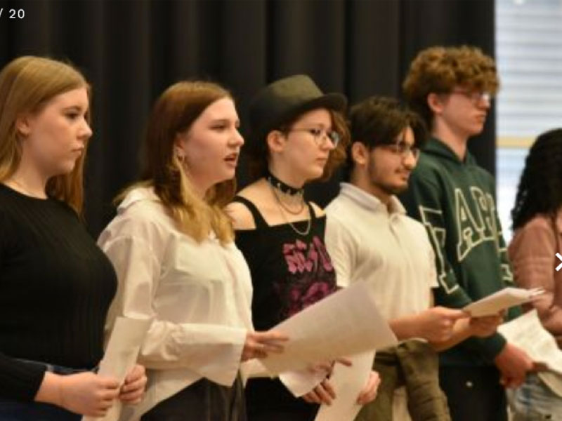 De Meckerkring: Schülerinnen und Schüler der IGS Kreyenbrück proklamieren an veränderten Orten und in Bewegung im PFL die Verkündung der Menschenrechte vor 75 Jahren.
