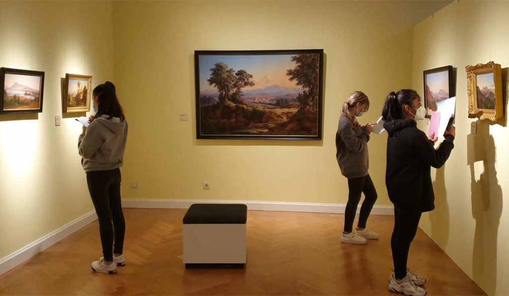 Die Arbeitsgemeinschaft, die sich auch in diesem Schuljahr regelmäßig im Museum trifft, hat sowohl Sonderausstellungen als auch die Dauerausstellungen genutzt. Es entstanden malerische Landschaftsdarstellungen und Street Art-inspirierte Collage-Porträts, deren Inspiration Werke im Oldenburger Schloss waren. Im Prinzenpalais haben die Schülerinnen und Schüler eigenständig Werke ausgewählt, zu denen sie malerisch gearbeitet haben. Die Ergebnisse sind so unterschiedlich wie die Originale, die den Anlass zur Gestaltung gaben. Mal wurde das Werk nachempfunden, mal die Stimmung wiedergegeben oder auch eine spezielle Technik genutzt.