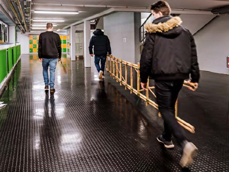 Teile ihrer Installation „Plattform“ verwendetet die Schüler darauf, unerschlossene Orte der IGS Kreyenbrück zu erobern.