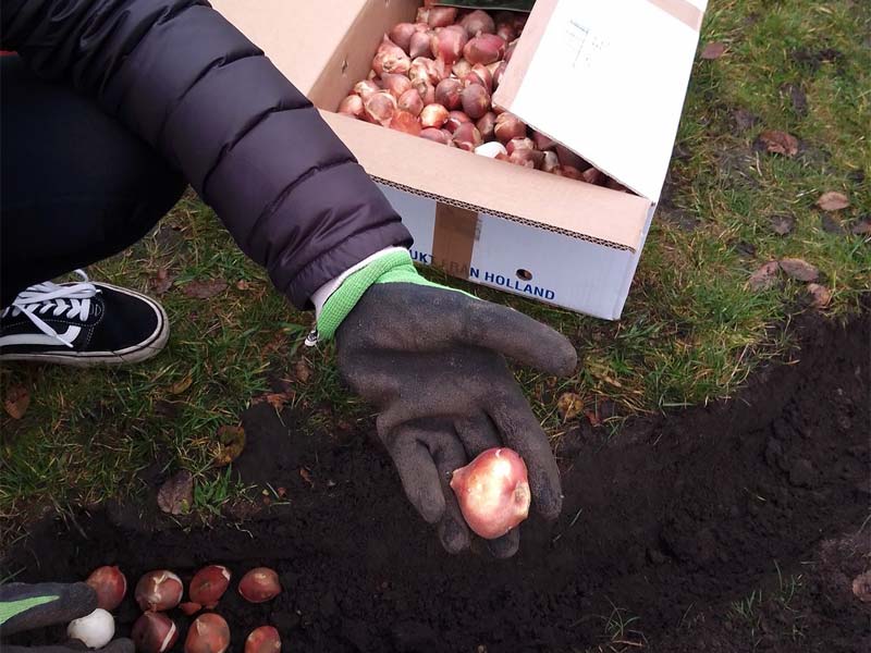 Schüler und Schülerinnen setzten 500 Tulpenzwiebeln
